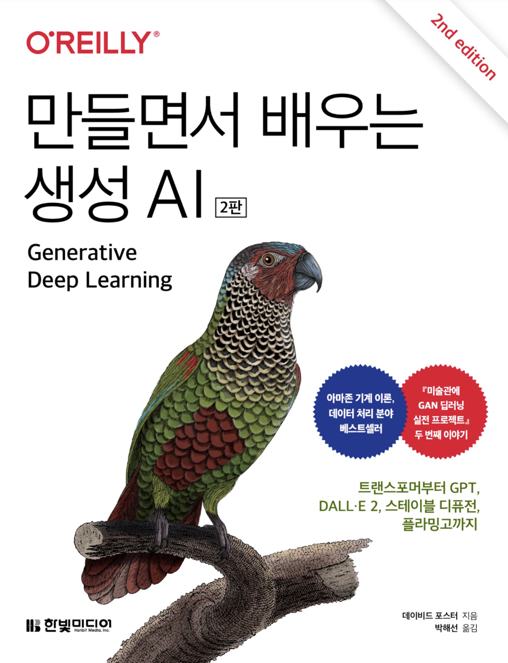 진화와 혁신의 경계를 넘는 생성 AI 완벽 가이드 이 책은 딥러닝 기초부터 최신 생성 AI 모델까지 설명합니다. 텐서플로와 케라스를 사용해 변이형 오토인코더(VAE), 생성적 적대 신경망(GAN), 트랜
