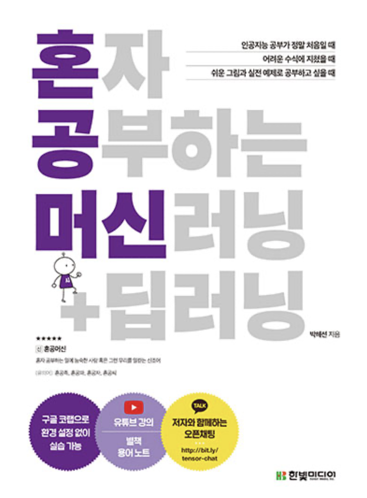 교재는 한빛미디어에서 출판된 혼자 공부하는 머신러닝 + 딥러닝을 참고하기로 하였습니다.