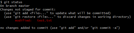 | git rm -cached [file name] | add된 것을 remove하는 경우 add되지 않는 파일을 rm할 경우 (fatal: pathspec 'test.txt' did not match any files ) * reset과 달리 deleted되었다고 표기됨 더이상 modified표기되지 않음 |