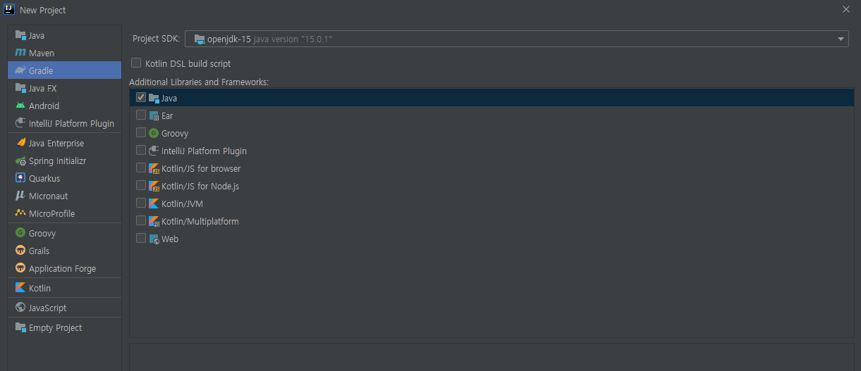 2. 실행 할 프로젝트 환경 설정 (화면에선 Gradle로 설정함)