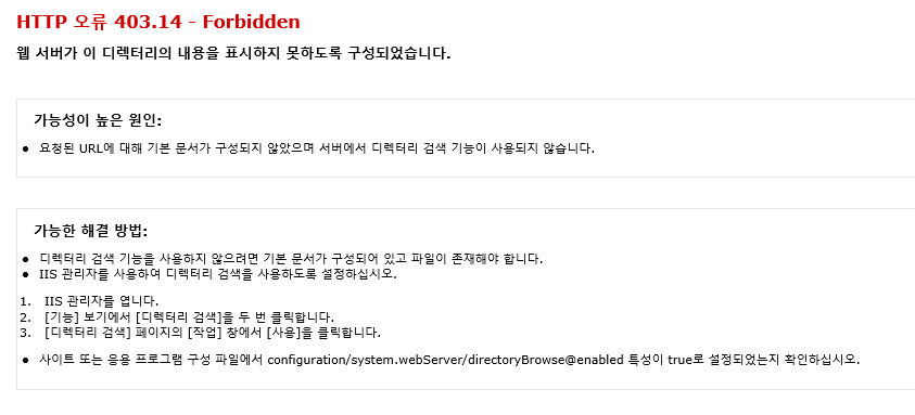 [.NET] HTTP 오류 403.14 오류 - 웹 서버가 이 디렉터리의 내용을 표시하지 못하도록 구성되었습니다.